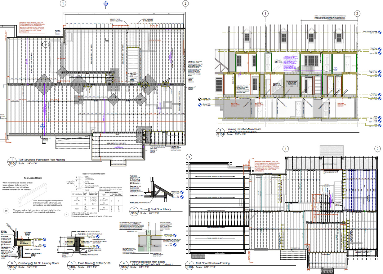 - S-400 – Structural Details: Footing sections, shear-wall nailing, ledger details.